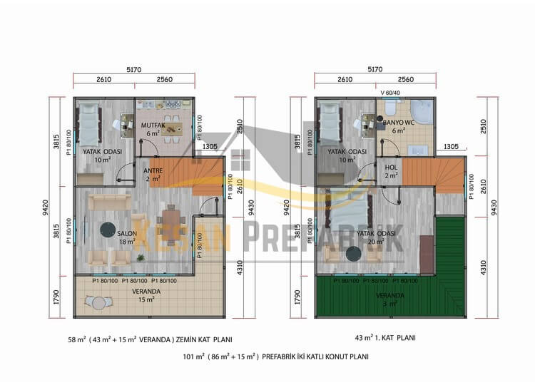 101 m² Çift Katlı Prefabrik Ev Günümüzde çok farklı ihtiyaçlara göre dizayn edilen prefabrik ev modelleri bulunmaktadır. Çift katlı prefabrik ev modellerimiz hem yerden hem zamandan kazanma şansınız oluyor. İstenilen arsaya uygulanabilen prefabrik evler yerinde montaj tekniği ile zamandan kazanma şansınız olmaktadır. Prefabrik ev ve konut yaptırmadan önce ne kadar tutara size malolacağını önceden öngörebiliyorsunuz. Prefabrik hazır evler emniyetlidir, güvenlidir çünkü deprem ve iklim şartları da dikkate alınarak üretilmektedir. Dış görünüm modern ve estetiktir. Prefabrik yapılar bulunduğu bölgede çevreye uyum sağlar, genel mimari görünüme uyumludur.