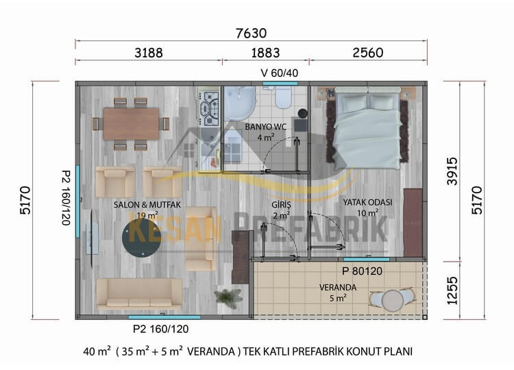 40 m² Tek Katlı Prefabrik Ev kurulacağı bölgenin iklim şartlarını (kar yükleri, rüzgâr hızlarını ) ve depremsel koşullarını göze alarak standart malzeme seçimi yapmaktadır. Prefabrik yapılar diğer yapılara göre daha esnek yapıldığı için deprem ve zemin kaymalarına karşı oldukça dayanıklıdır. Isı ve ses yalıtımlarının diğer yapılara göre çok daha fazla olması sebebiyle oldukça kullanışlı yapılardır. Prefabrik yapıların son derece dayanıklı olması ve oldukça uygun fiyatla üretilmesi, insanlar üzerinde olumlu etki bırakmasına neden olmaktadır.