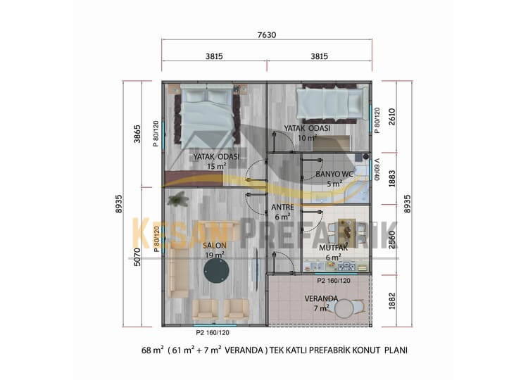 68 m² Tek Katlı Prefabrik Ev kurulacağı bölgenin iklim şartlarını (kar yükleri, rüzgâr hızlarını ) ve depremsel koşullarını göze alarak standart malzeme seçimi yapmaktadır. Prefabrik yapılar diğer yapılara göre daha esnek yapıldığı için deprem ve zemin kaymalarına karşı oldukça dayanıklıdır. Isı ve ses yalıtımlarının diğer yapılara göre çok daha fazla olması sebebiyle oldukça kullanışlı yapılardır. Prefabrik yapıların son derece dayanıklı olması ve oldukça uygun fiyatla üretilmesi, insanlar üzerinde olumlu etki bırakmasına neden olmaktadır.