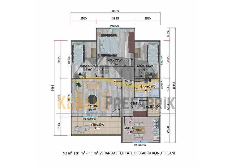92 m² Tek Katlı Prefabrik Ev kurulacağı bölgenin iklim şartlarını (kar yükleri, rüzgâr hızlarını ) ve depremsel koşullarını göze alarak standart malzeme seçimi yapmaktadır. Prefabrik yapılar diğer yapılara göre daha esnek yapıldığı için deprem ve zemin kaymalarına karşı oldukça dayanıklıdır. Isı ve ses yalıtımlarının diğer yapılara göre çok daha fazla olması sebebiyle oldukça kullanışlı yapılardır. Prefabrik yapıların son derece dayanıklı olması ve oldukça uygun fiyatla üretilmesi, insanlar üzerinde olumlu etki bırakmasına neden olmaktadır.